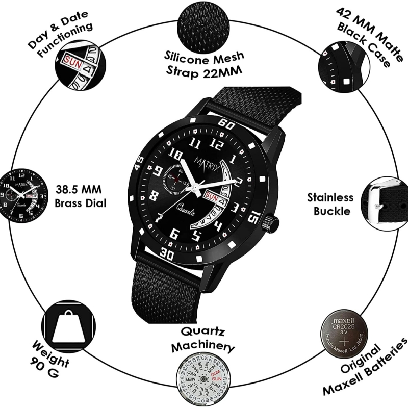 ساعة عرض المعصم لليوم والتاريخ التناظرية للرجال والأولاد