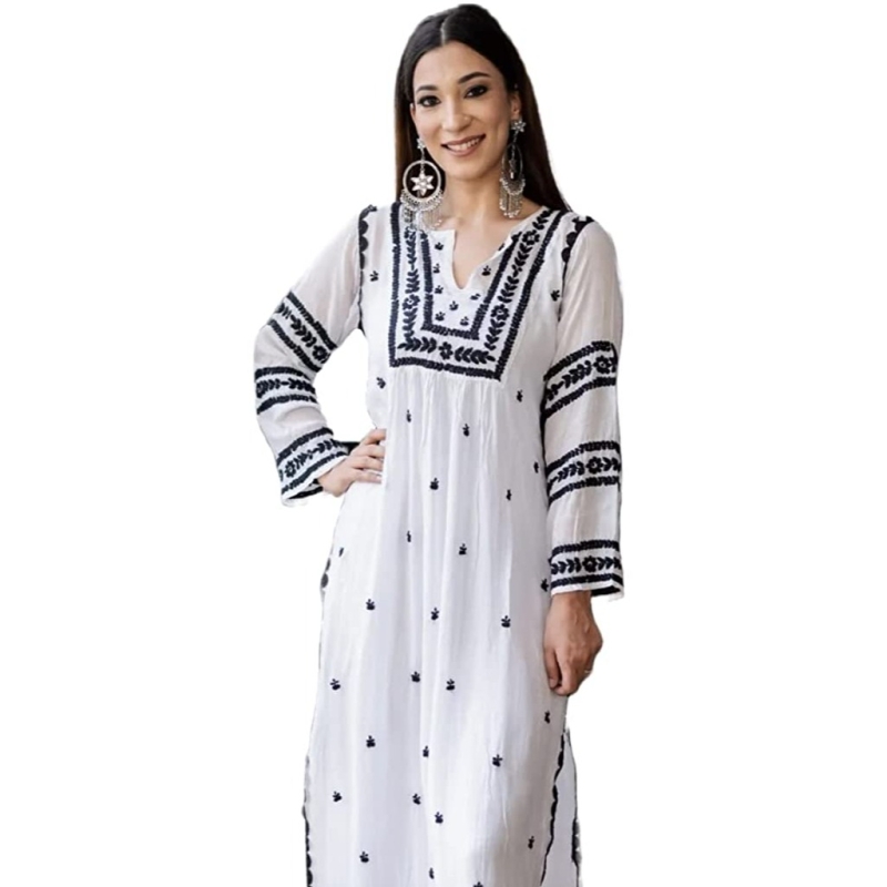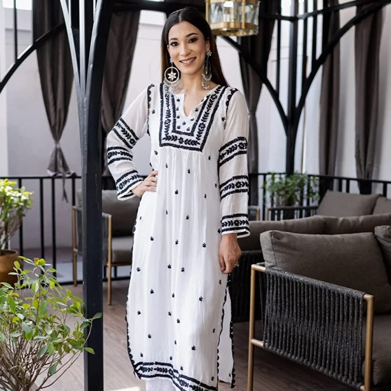 ANNI DESIGNER Women's Cotton Blend Embroidered Straight Kurta