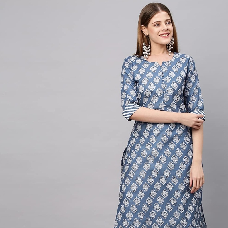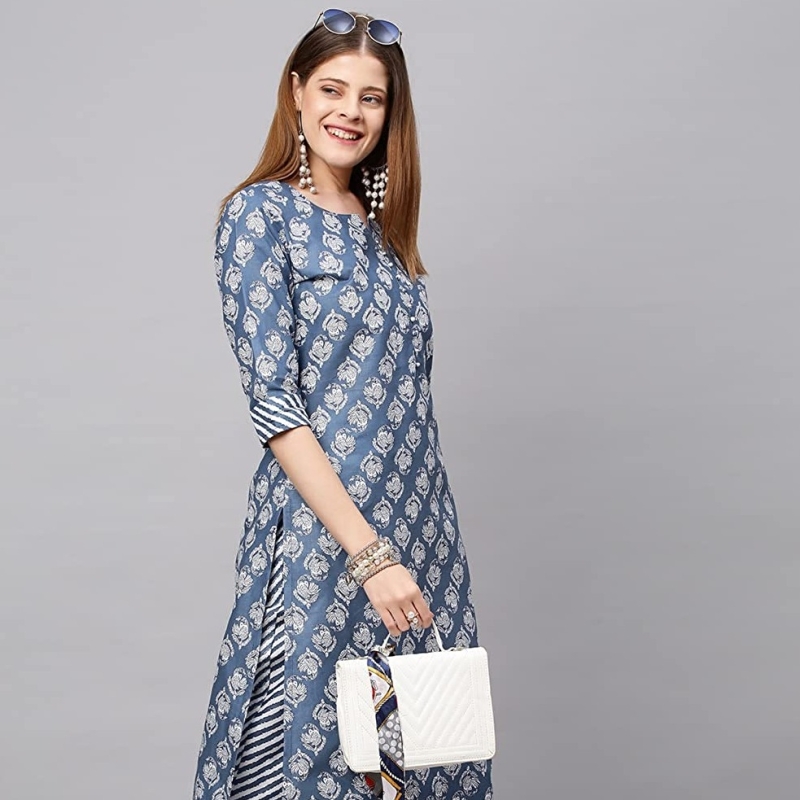 ANNI DESIGNER Women's Cotton Blend Printed Straight Kurta with Pant