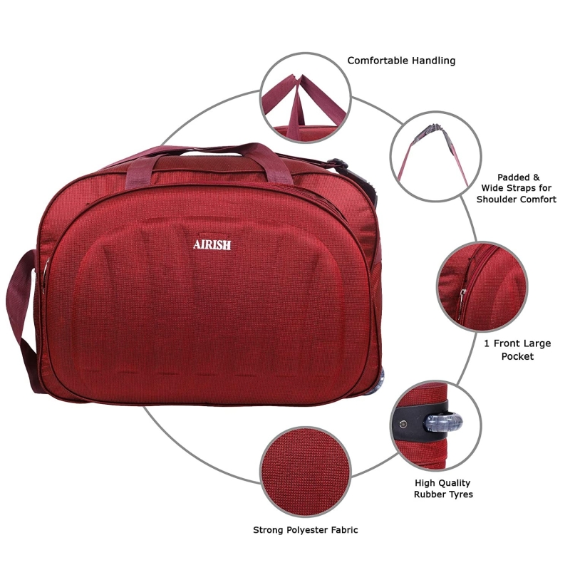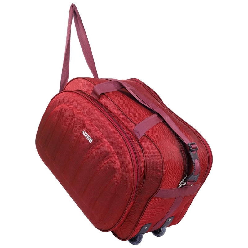 Airish Fashion Polyester Lightweight 50 L Luggage Travel Duffel Bag with 2 Wheels (Red)
