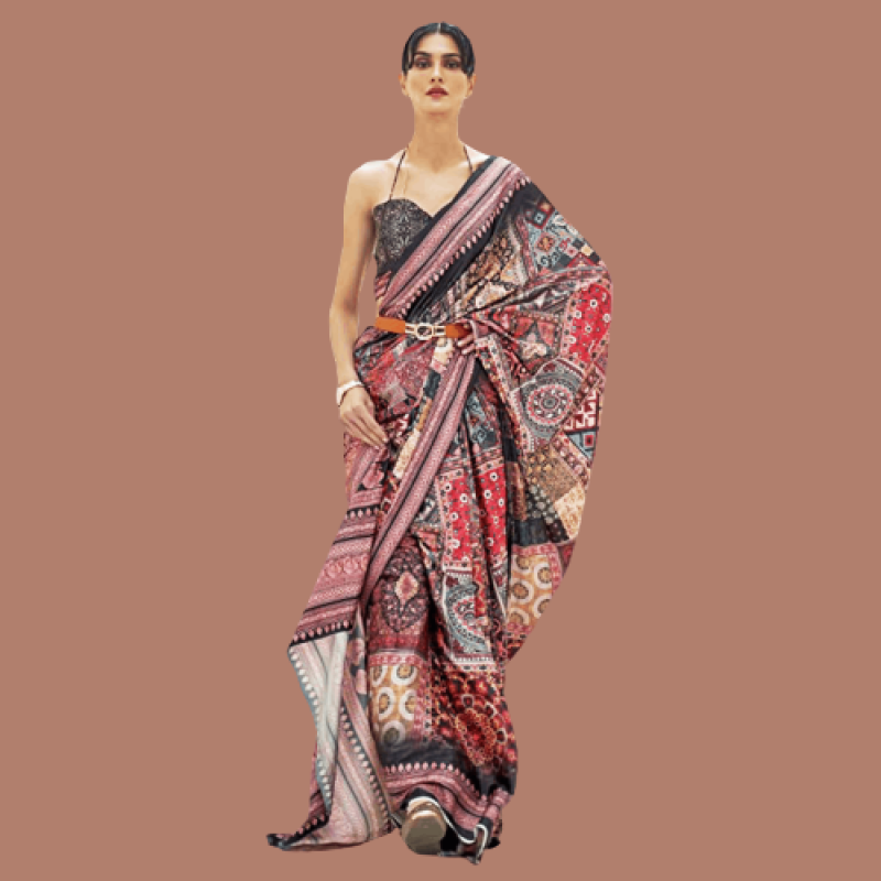 Color :- Multicolored Saree || Black Unstitched Blouse