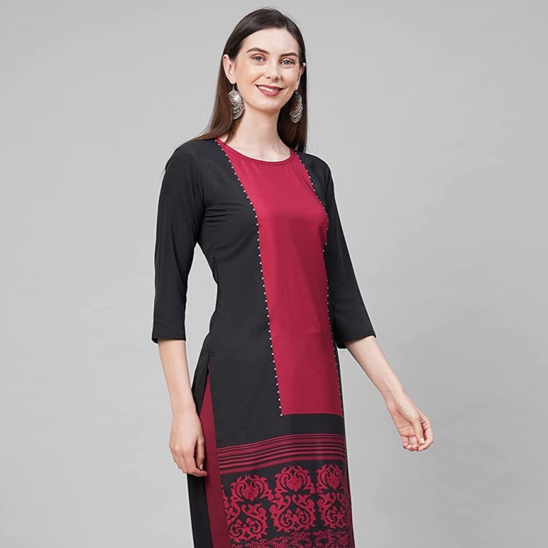 • Style: Kurta – Straight, Neckline:Round Neck ,Sleeve Pattern: Normal Sleeve Length: 3/4th