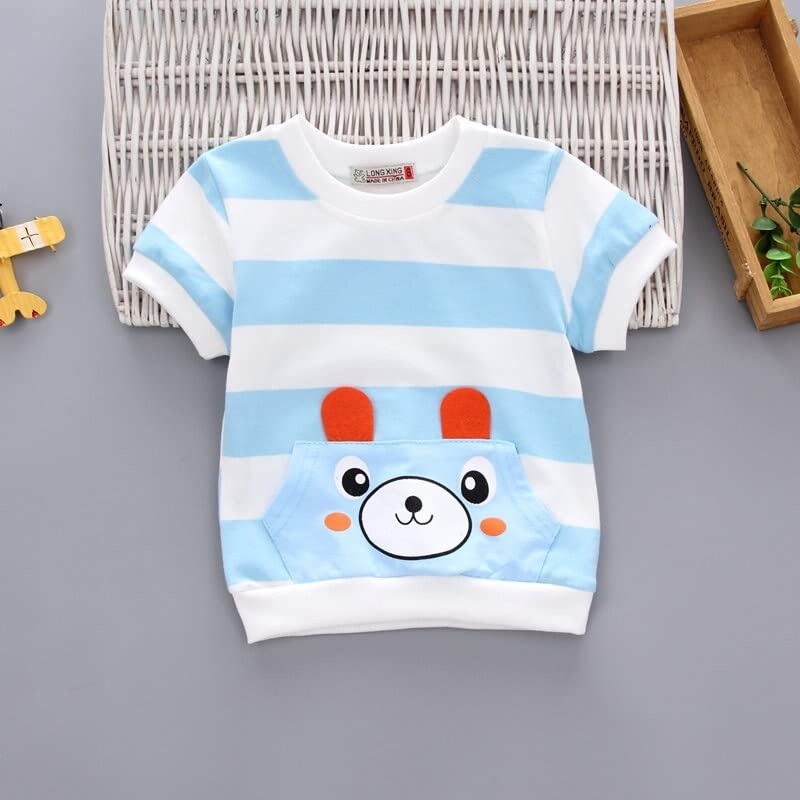 Bold N Elegant Kids Cartoon Stripe Print Cotton Half Sleeve T-shirt and Shorts