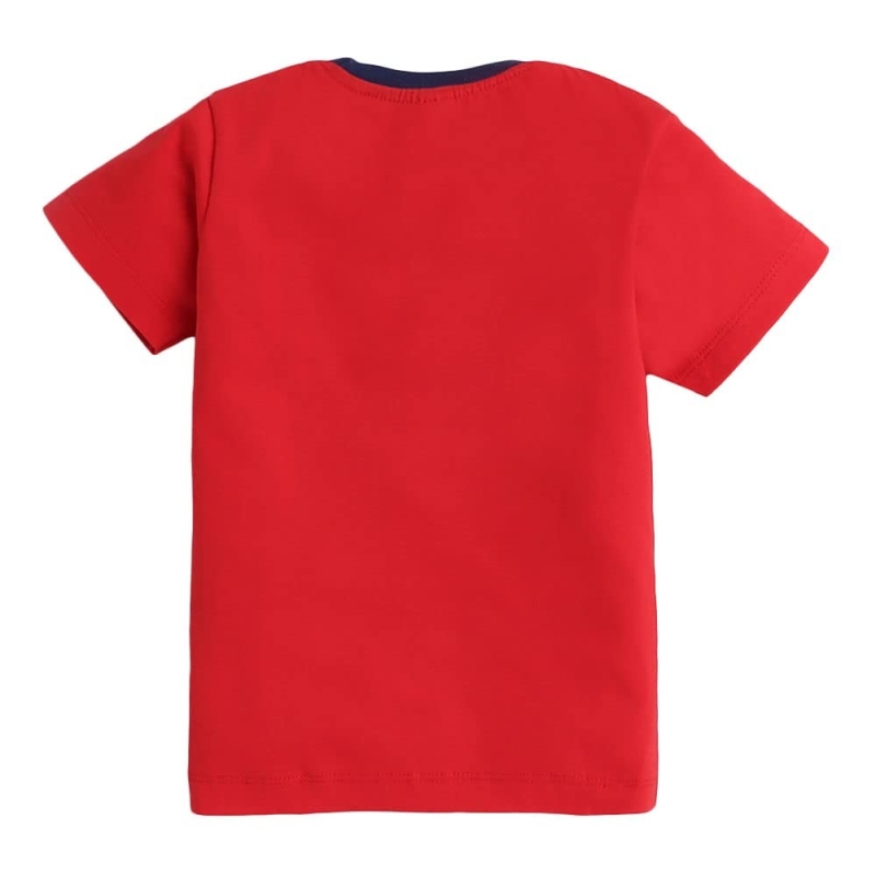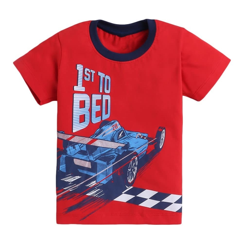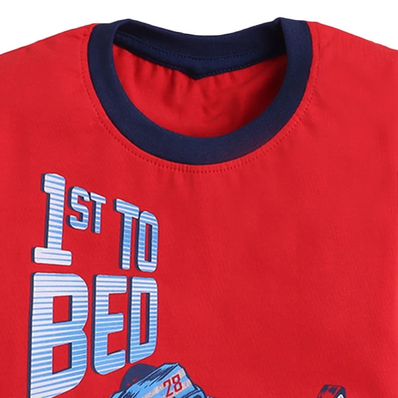 Hopscotch Boys Cotton Vehicle Print T-Shirt and Pajama Set in Red Color