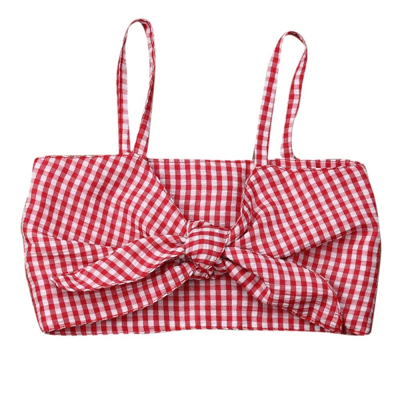 Hopscotch Girls Cotton Checker Sleeveless Top and Short Set in Red Colour