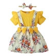 Hopscotch Girls Cotton Floral Print Onesie & Skirt Set with Headband in Yellow Color