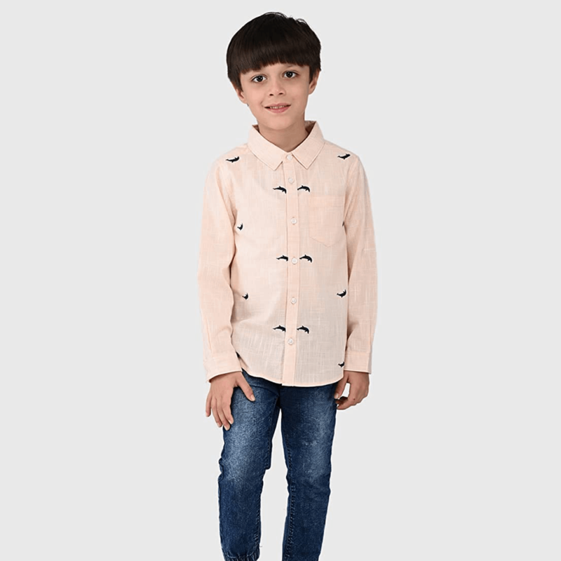 Junior Boys 100% Cotton Regular Fit Full Sleeves Embroidered Shirt