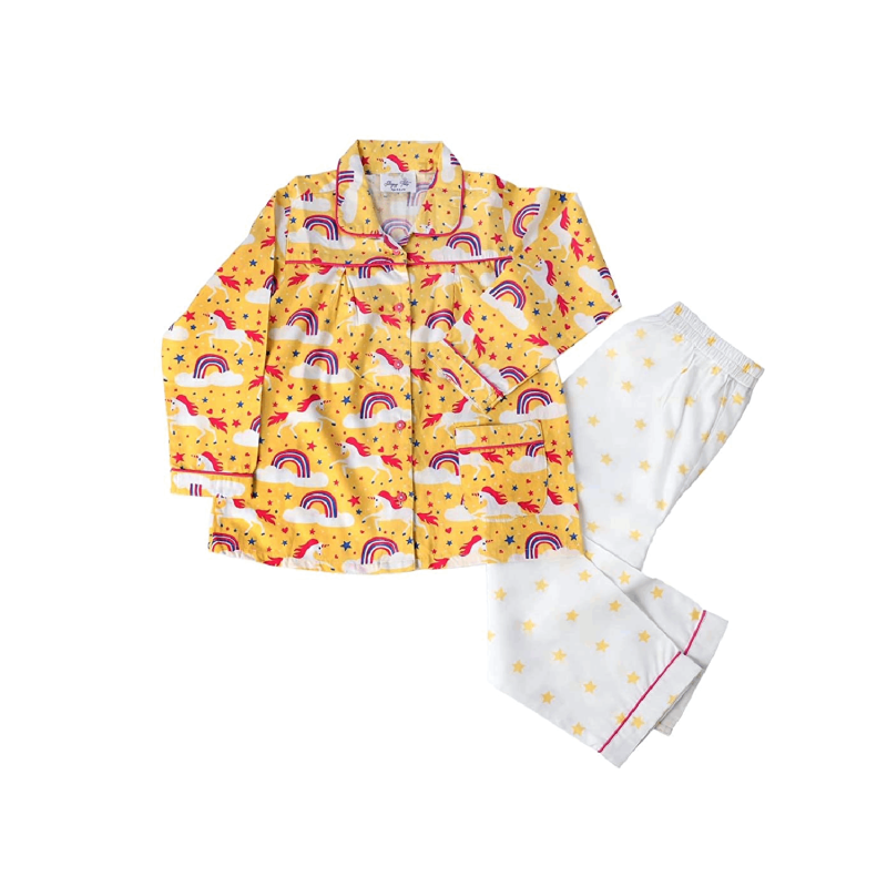 • The package includes 1 piece shirt with front button closure and 1 piece pyjama with the softest drawstring elastic making sure your child sleeps comfortably throughout the night without worrying about rashes or discomfort.
