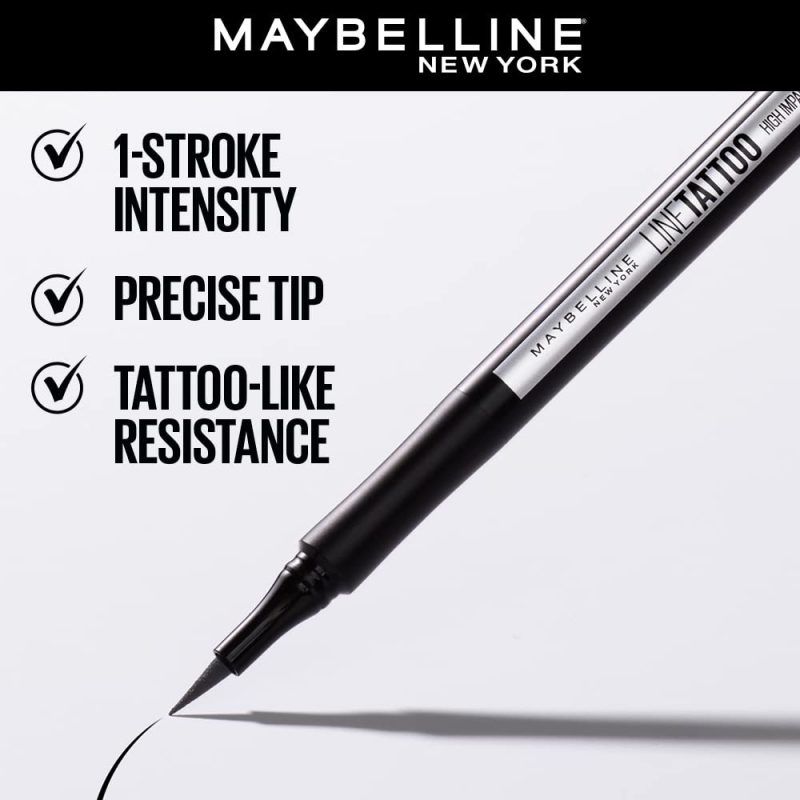 • Contents: 1x Maybelline New York Line Tattoo High Impact Liner, Intense Eyeliner, Long-lasting, Felt-tip Applicator, Black