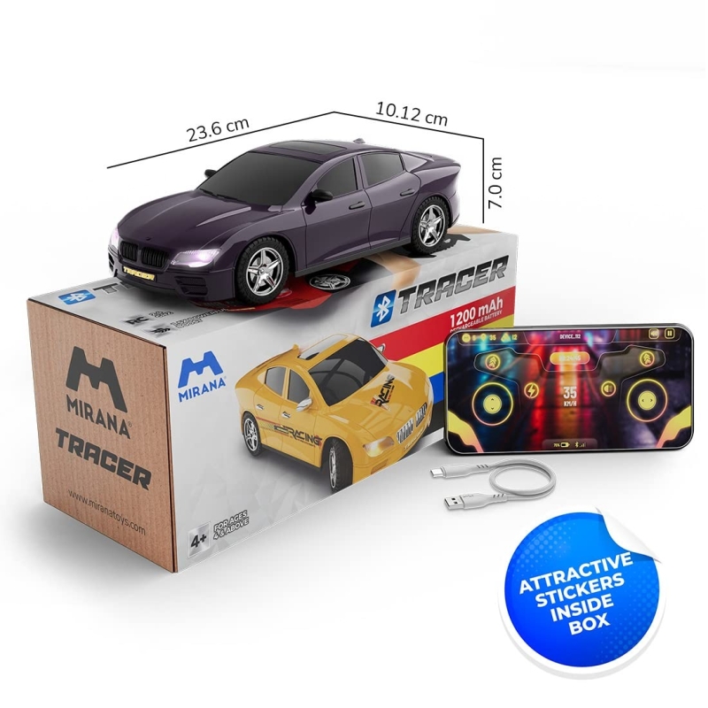 • App Control: Move the Racing Car vehicle forward, backward, left and right through the Mirana App. The App also allows you to enjoy the Nitro Booster, background music and other features just like playing a Mobile Game.