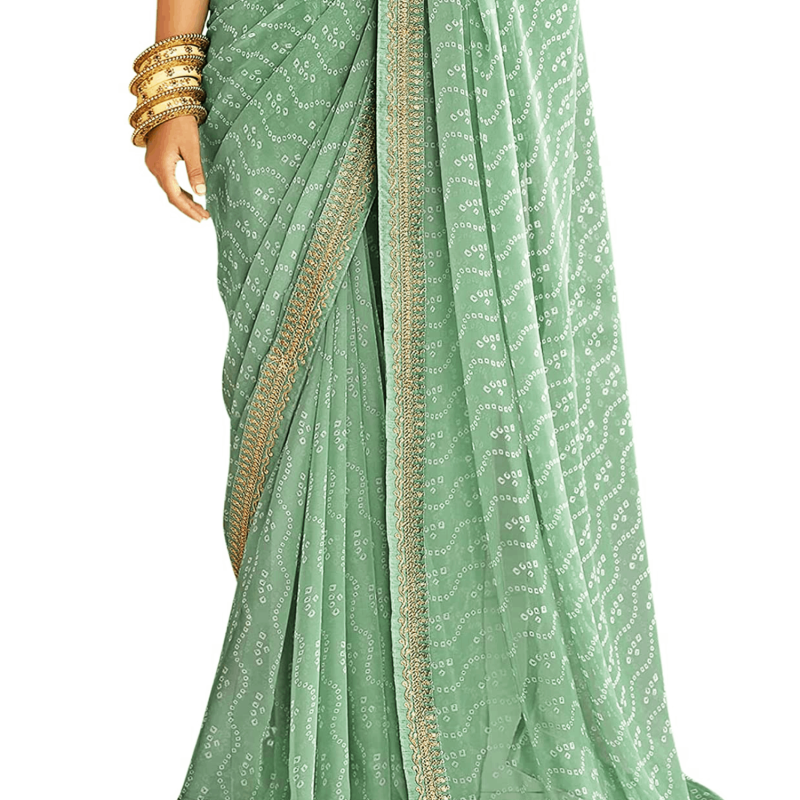 Women's Bandhani Printed & Embroidery Work In Lace Georgette Saree