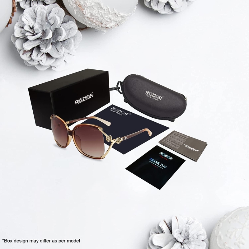 • PACKAGE INCLUDE: 1xRozior Sunglass, 1xSunglass Branded Sunglass Case, 1xGift Box, 1xBranded Fibre Cleaning Cloth, 1xUser Manual, 1xWarranty Card. 100% Authentic Rozior Brand Sunglass with Product ID Verification & Warranty registration on Rozior official website.