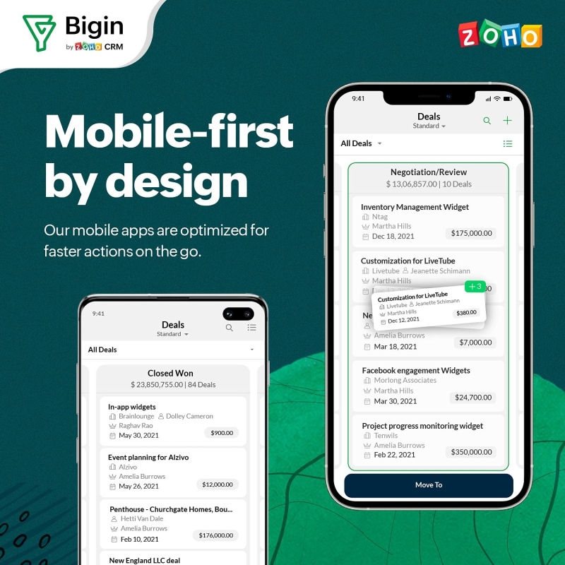 Focused on providing an excellent user experience, Bigin's highly-rated mobile apps help you manage deals and stay updated on customer information even when on the go