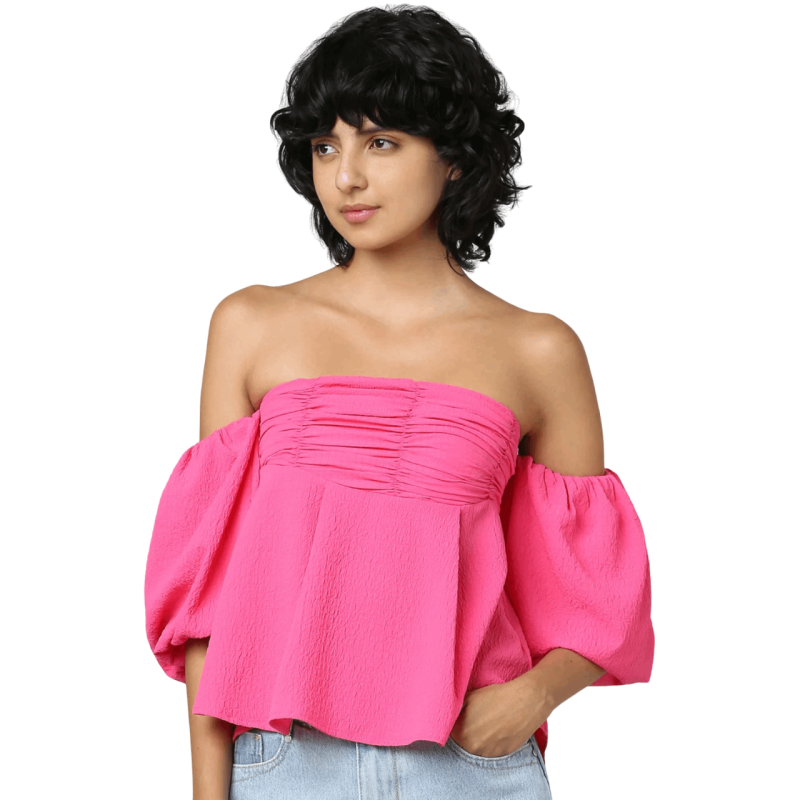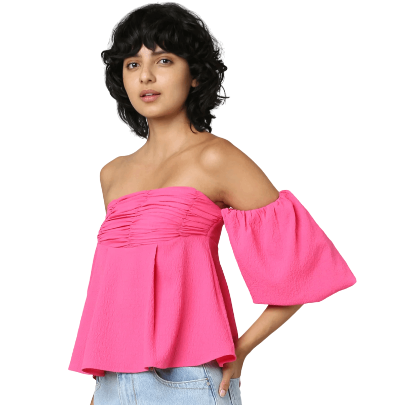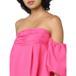 هاربا بلوزة بأكتاف مكشوفة باللون الوردي