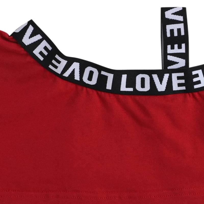 الحجلة بنات القطن ، دنة النص طباعة تي شيرت و بنطلون رياضي في اللون الأحمر