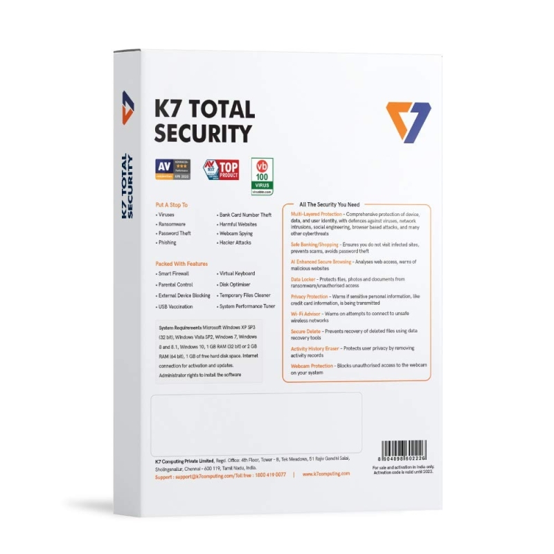 K7 الأمن الكلي -- 1 جهاز كمبيوتر ، 1 سنة (CD أو قسيمة)