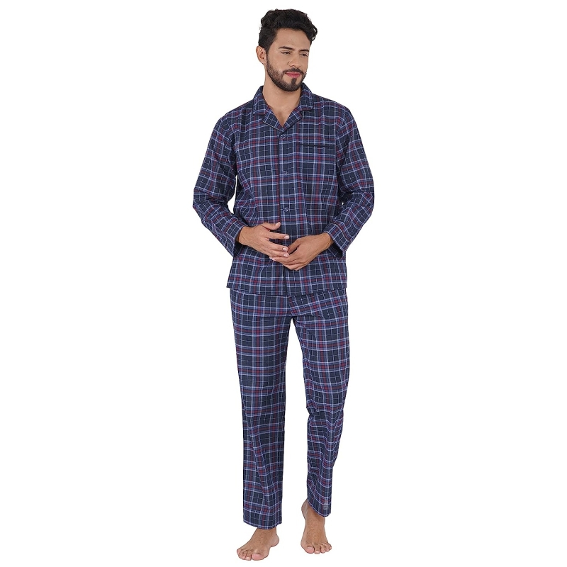 الرجال الأزرق الشيكات قميص طويل الأكمام مع مجموعة بيجاما مرنة