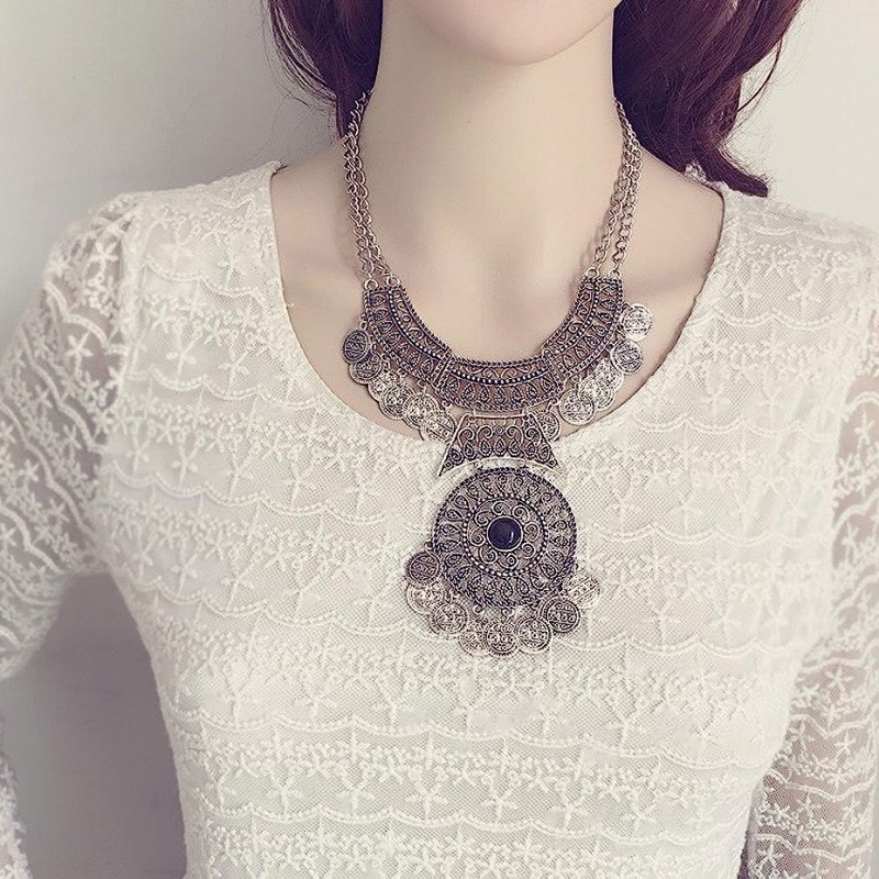 مؤكسد المجوهرات البوهيمي العتيقة خمر سلسلة قلادة أنيقة للنساء والفتيات