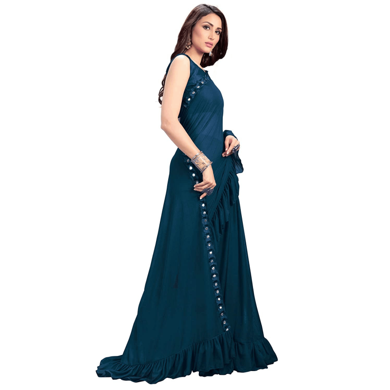 براثام بلو ساري حريري نسائي مع قطعة بلوزة