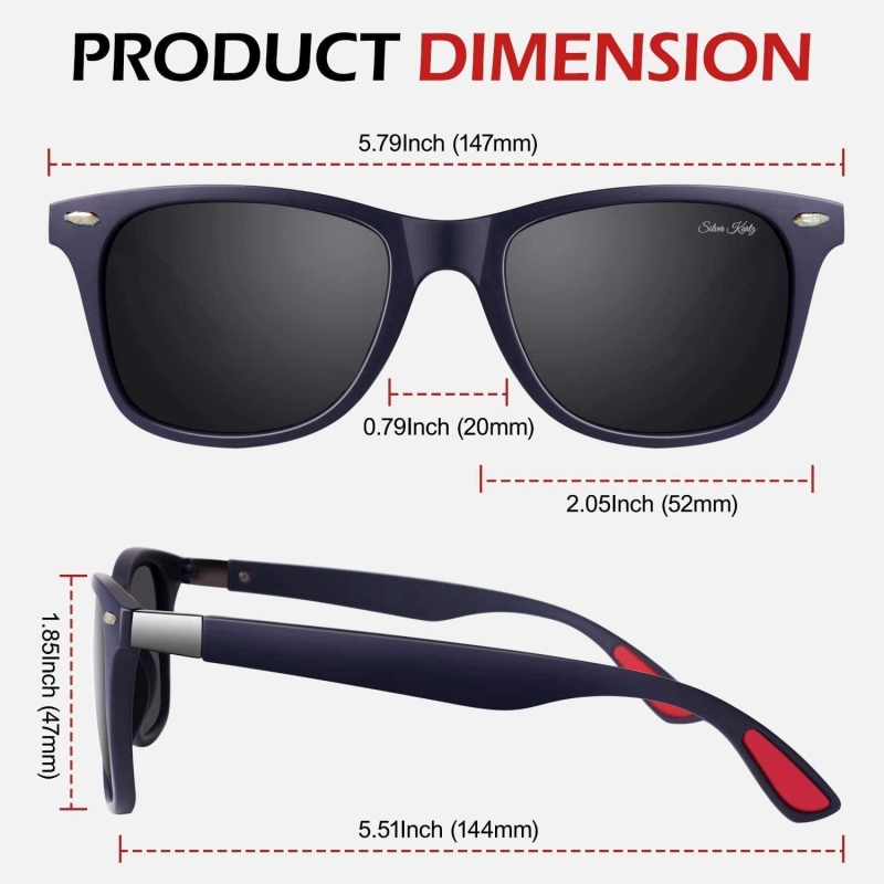 فضي كارتز أسود نظارات شمسية رياضية مستطيلة للرجال