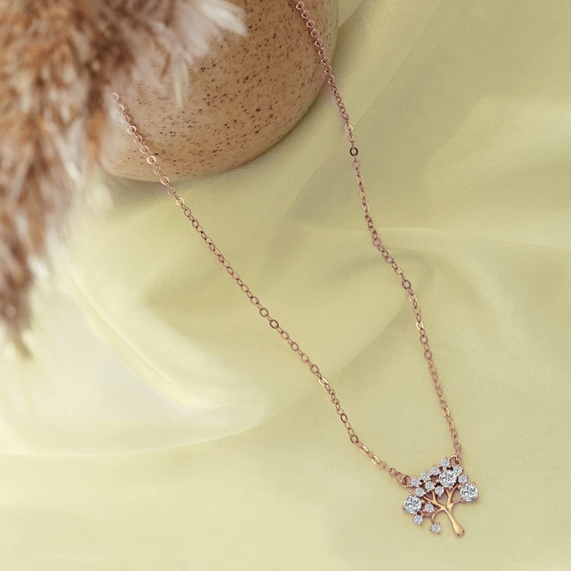 الفضة الاسترليني شجرة الحياة روز الذهب قلادة