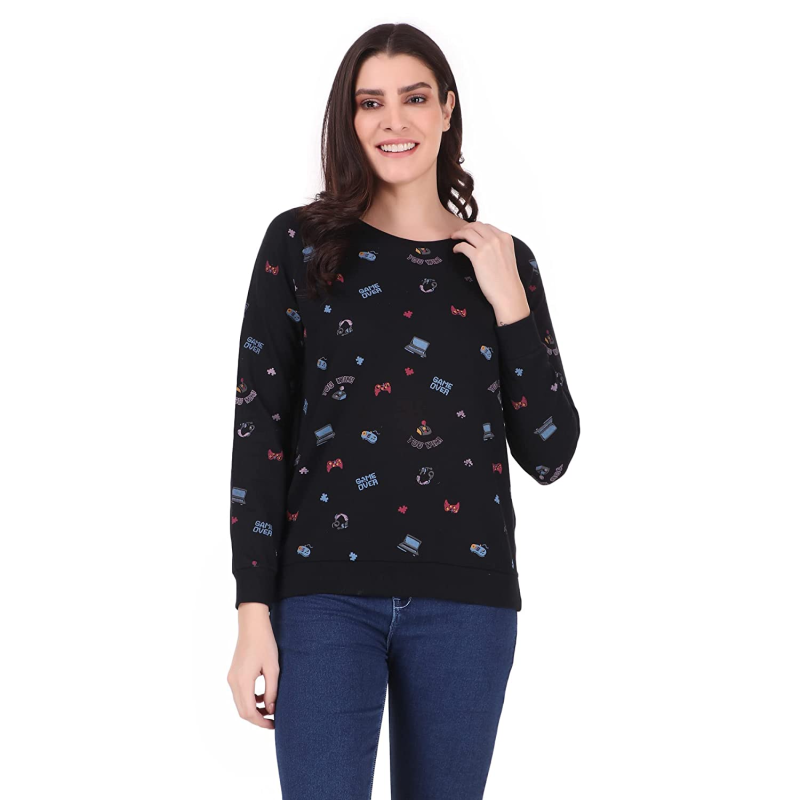 Stories.Label Cotton Printed Sweatshirts for Women in Round Neck and Regular Fit (Sizes Small- 5XL)