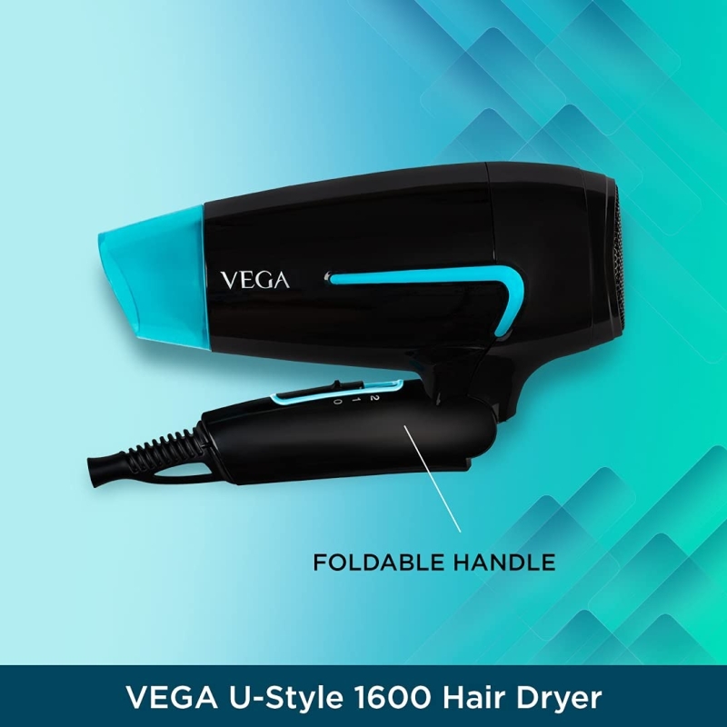 Vega U-Style مجفف شعر قابل للطي بقوة 1600 واط للرجال والنساء مع زر رائع