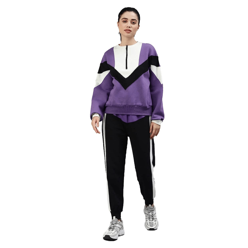 نسائي أرجواني أسود اللون بدلة رياضية محبوكة
