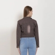 سترة صلبة مغسولة بأزرار ، لها ياقة منتشرة ، 2 جيوب ، زر للإغلاق ، أكمام طويلة ، حافة مستقيمة ، وقطن.