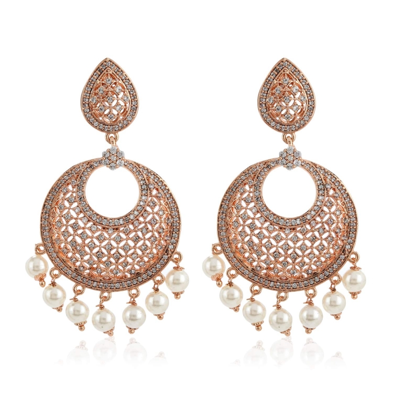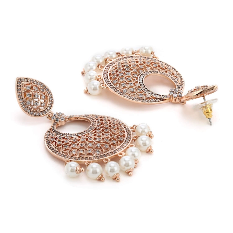 24K Rose Gold Plated American Diamond Brass Metal Mesh Drop Earring