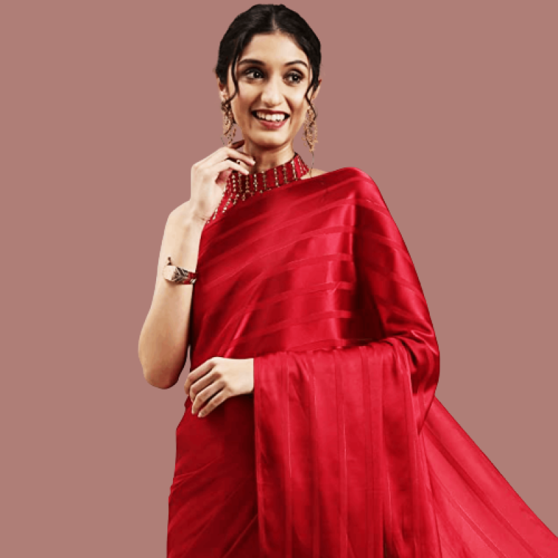 AKHILAM Women's Satin Saree With Unstitched Blouse Piece