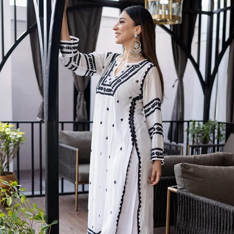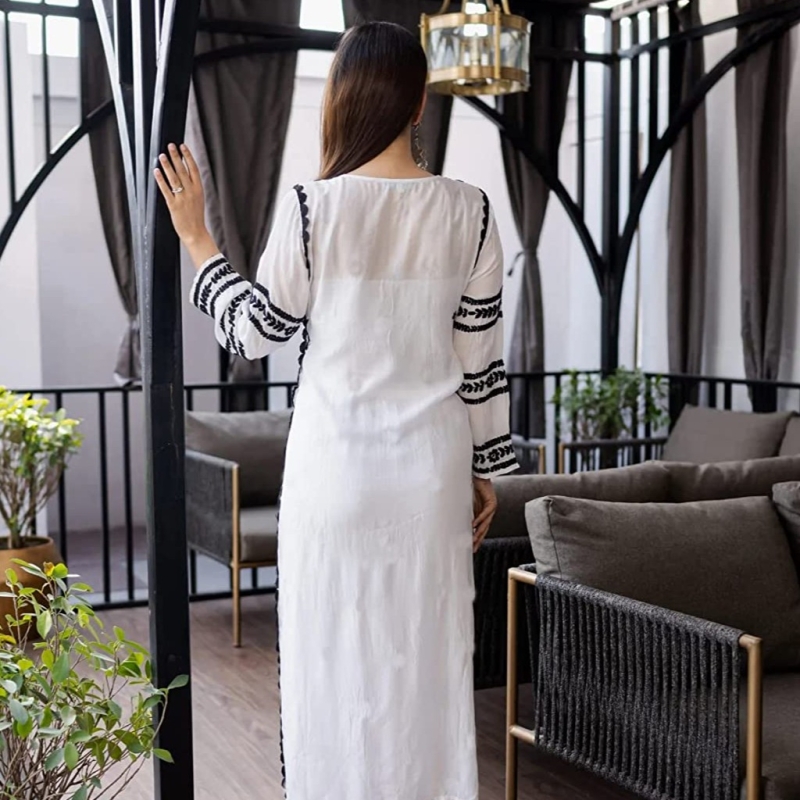 ANNI DESIGNER Women's Cotton Blend Embroidered Straight Kurta