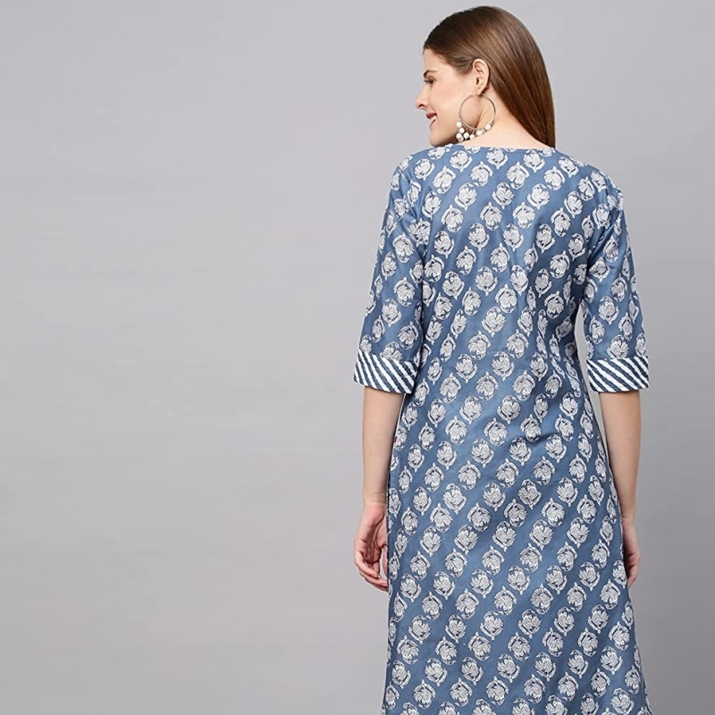 ANNI DESIGNER Women's Cotton Blend Printed Straight Kurta with Pant