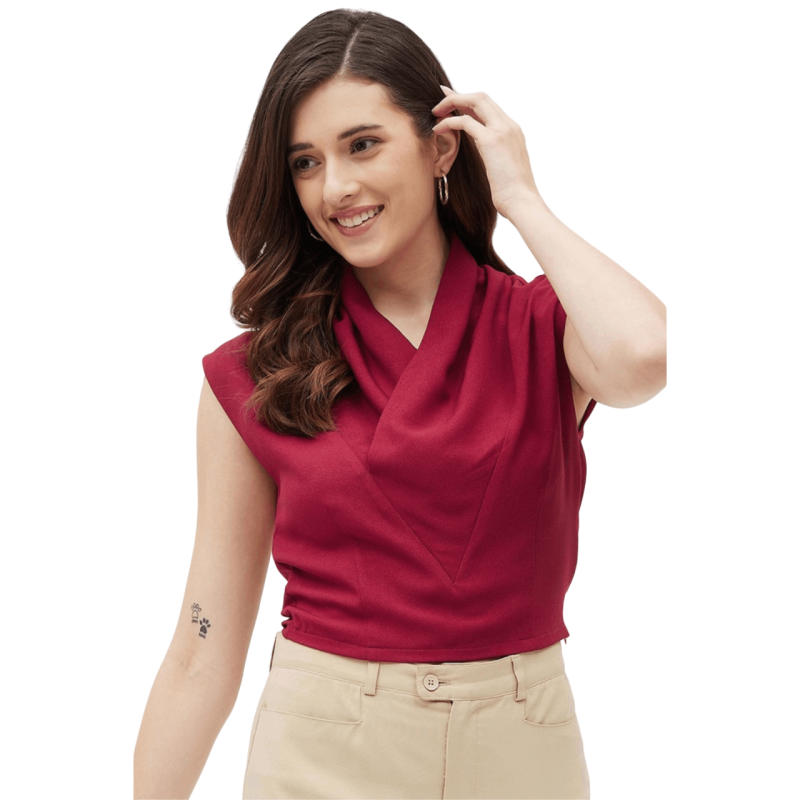 BIBA Solid Crepe V Neck Top