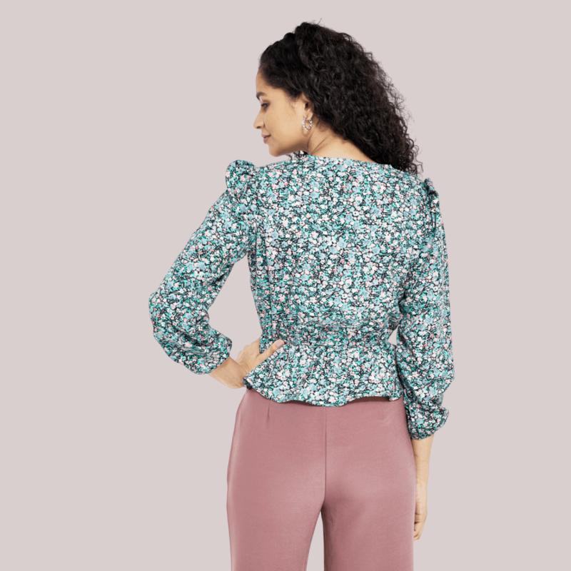 Strike the right blend between comfort and fashion with this full-sleeved, v-neck women's top of lightweight polyester fabric.