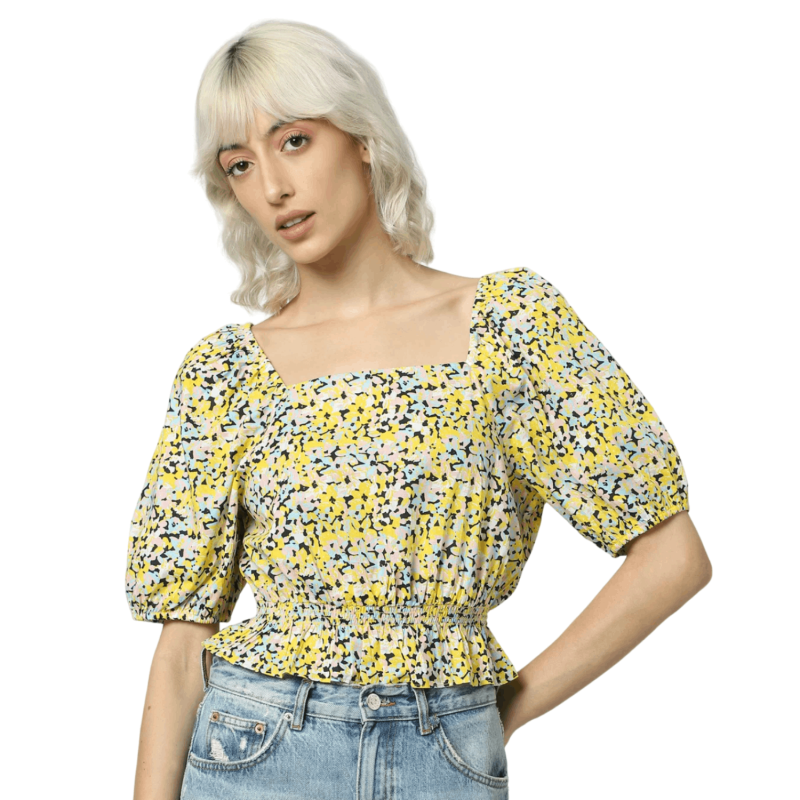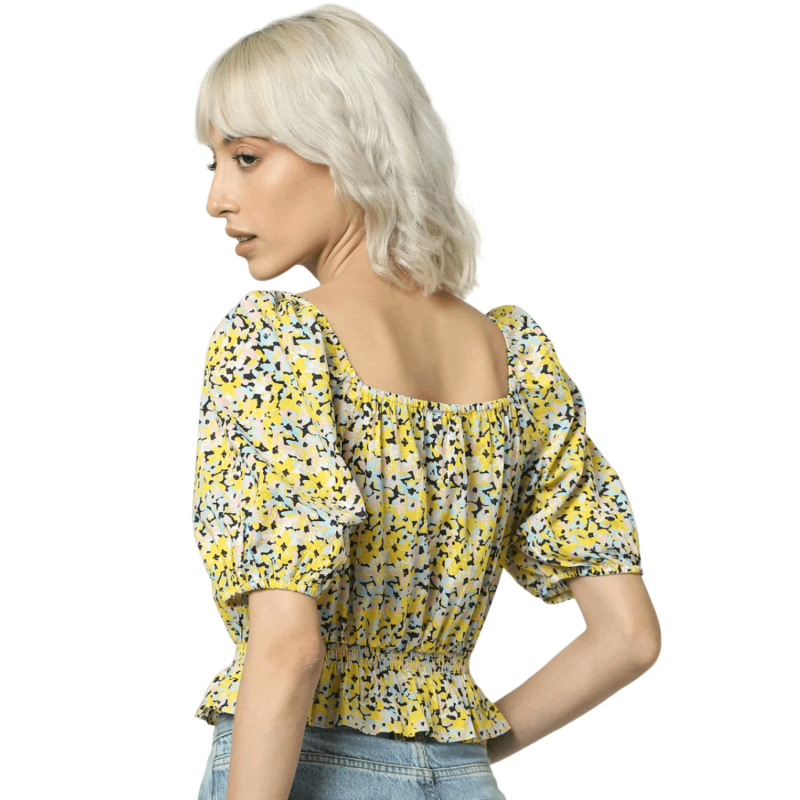 Floral printed crop top from Harpa. Style it with high-rise jeans and heels for a dressy summer look!