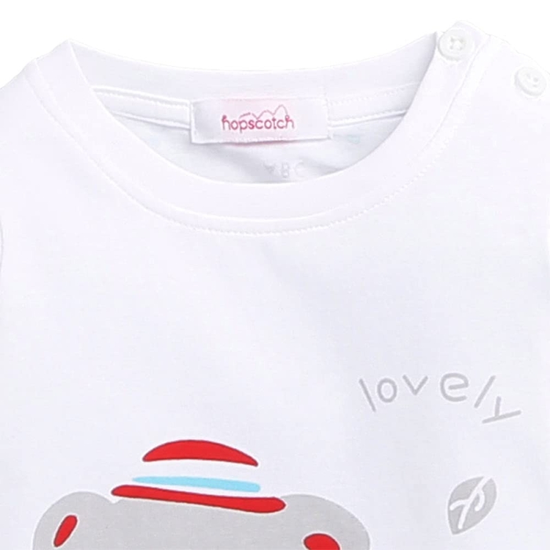 Hopscotch Baby Boys Cotton-Blend Animal Print Top and Pajama Set in White Color