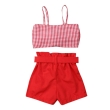 Hopscotch Girls Cotton Checker Sleeveless Top and Short Set in Red Colour