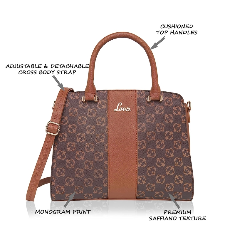 • Complete your look with this beautiful Monogrammed satchel from Lavie. The design and compartments allow you to carry all your essentials in an organised fashion.