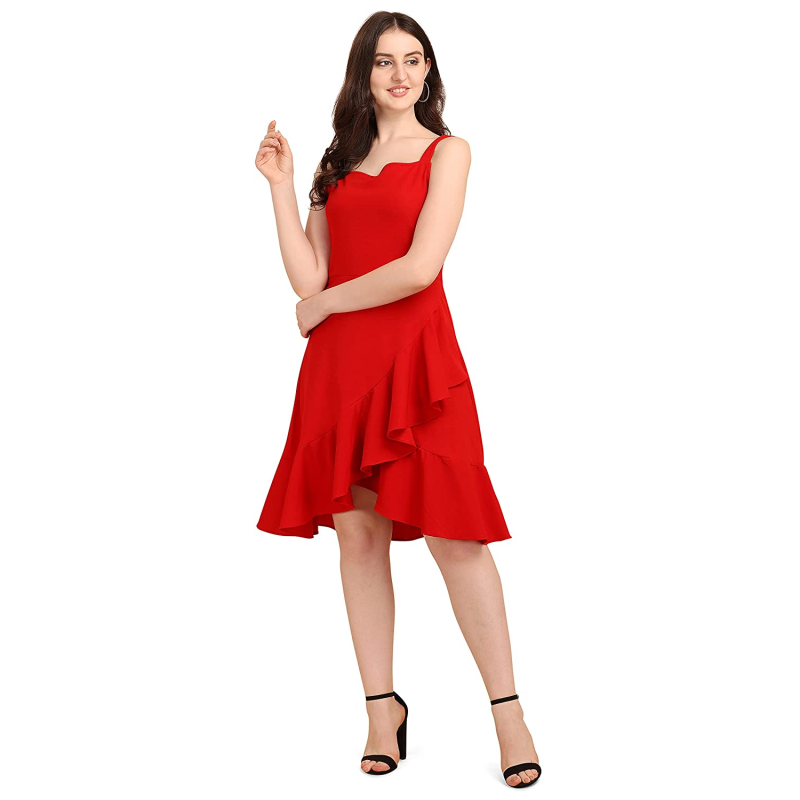OOMPH! Women's Lycra A-Line Knee-Long Dress (Lycra_wrap}