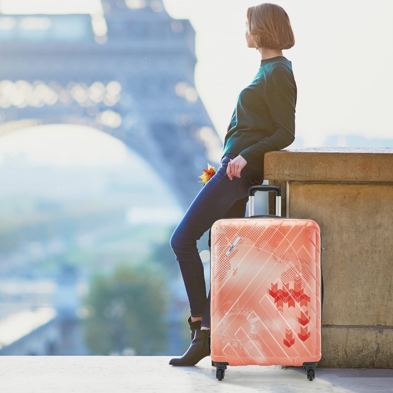 • FEATURES : Number of Wheels - 4, Number Lock, No of Compartments -2, Adjustable Trolley, Hard Case Printed Design Trolley