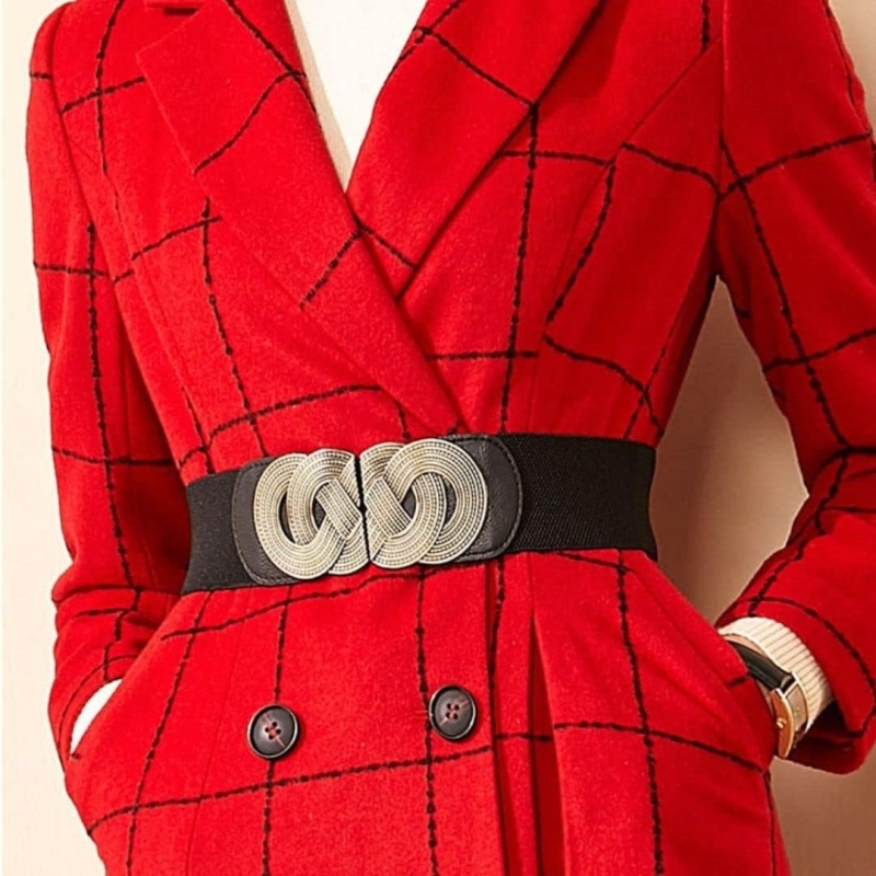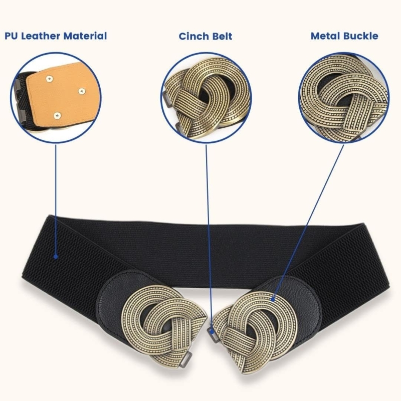 • This stretchy belt is made up of 70% Polyester, 25% Elastane, 5% PU Leather and metal fastening buckle, easy and convenient to wear and take Off.