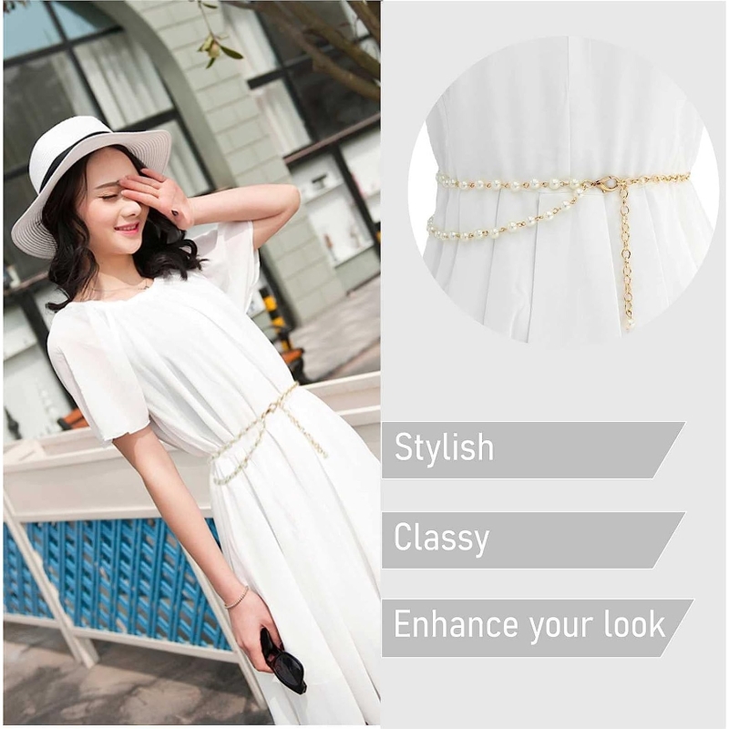 • This belt is made up of alloy and faux pearl, easy and convenient to wear and take Off.