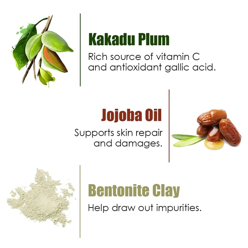 • The mask is formulated with kakadu plum, activated vitamin c, shea butter, bentonite clay, jojoba oil and lemon and orange essential oils. It helps to nourish and improve skin health, Container Type - Jar