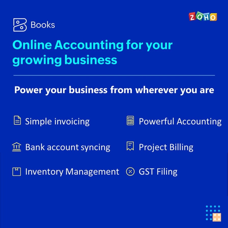 • Manage your business finances on the go, track your inventory and handle mundane accounting tasks effortlessly with Zoho books