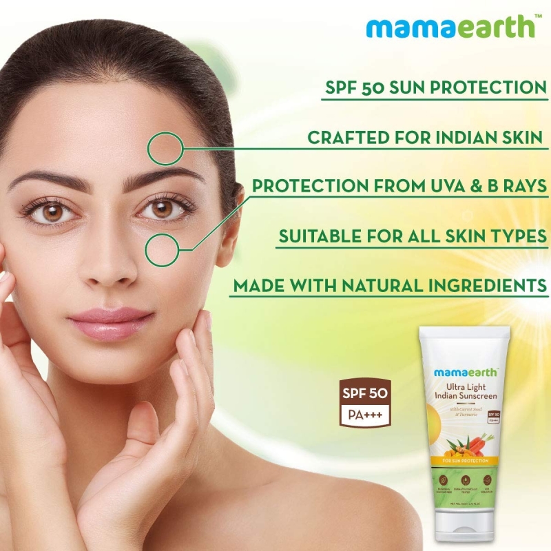 Mamaearth كريم واقي من الشمس الهندي الخفيف للغاية مع بذور الجزر