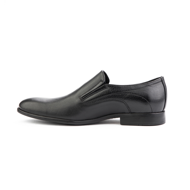 يتميز زوج من الأحذية الرسمية بمقدمة دائرية بمقدمة بنية اللون بتصميم منتظم، مع إغلاق سهل الارتداء.
