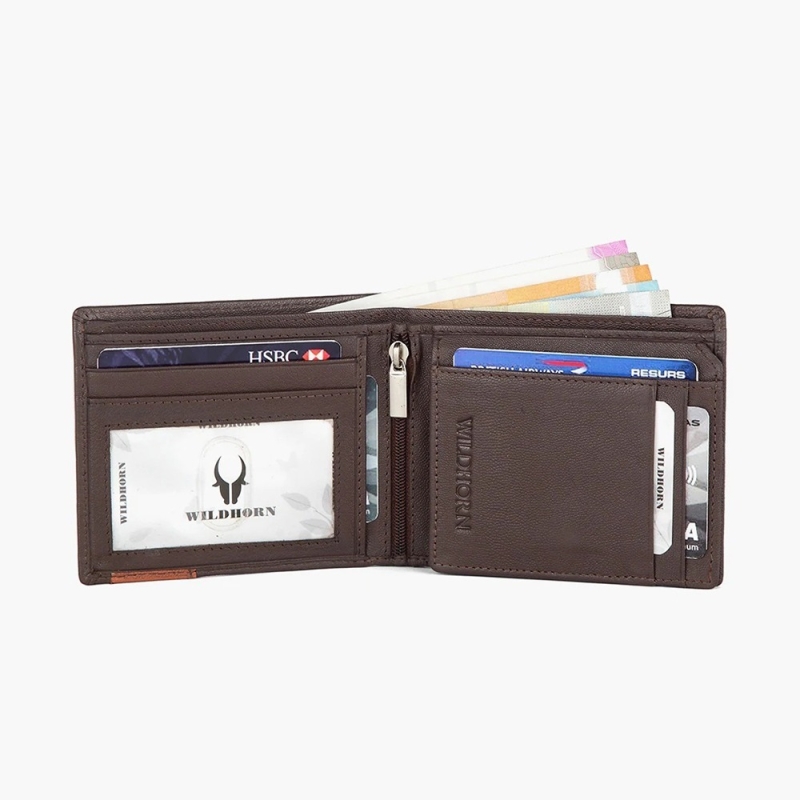 الرجال البني الصلبة RFID الجلود المحمية اثنين من أضعاف محفظة