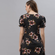 • الجاذبيه! فستان أسود قصير/قصير على شكل حرف A من قماش الكريب برقبة V وأكمام منفوخة