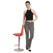 POPWINGS بنطلون نسائي مطبوع بالأبيض والأسود متوسط الخصر